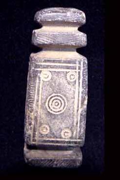 A Persian grey steatite game piece engraved with linear and circle motifs. Ghaznavid period, circa 10th to 12th century A.D. Afghanistan.