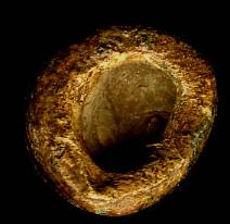 Viking Gaming Piece. A gaming piece used in the game of Hnefatafl. The Vikings played a game distantly related to chess called Hnefatafl, which translates into English as The King's Chequered Table. The game was played between two players on a wooden board marked out into 121 equal squares. In the centre sits the King on a special square signifying a castle. Around him are placed 12 defensive pieces. The attacking pieces are arranged around the edges of the board in formations of six on each side. The purpose of the game for the defence is to place the King in one of the corner squares, which are also designated as castles and surround the King on all four sides preventing him from moving. |