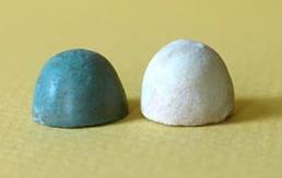 glass gaming pieces, both dome shaped, made of the “Egyptian blue” type of glass.