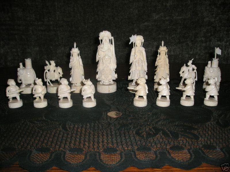A typical Chinese ivory set, probably from the 1Q 20th century.