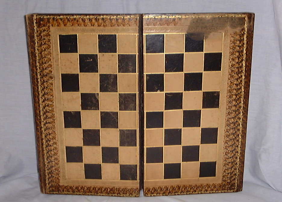 This antique Jaques board folds into a box, into which the pieces can be placed for storage.