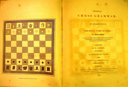 The early 1800's saw many chess publications in London. Kenny's Practical Chess Grammar was an educational guide on the game, with a novel printed font of the chess pieces.