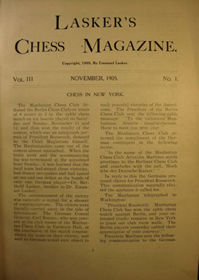 Lasker's Chess Magazine - Nov 1905 to Apr 1906