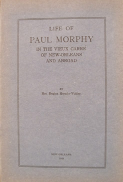 Life of Paul Morphy in the Vieux Carre of New Orleans and Abroad, by Regina Morphy-Voitier. L/N 3096. 40 pages, paper covers, mint. A rare book, written by Paul Morphy's niece, Regina Morphy-Voitier. |