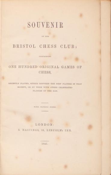 Games between members of the Bristol Chess Club. An interesting list of subscribers is provided within the book.