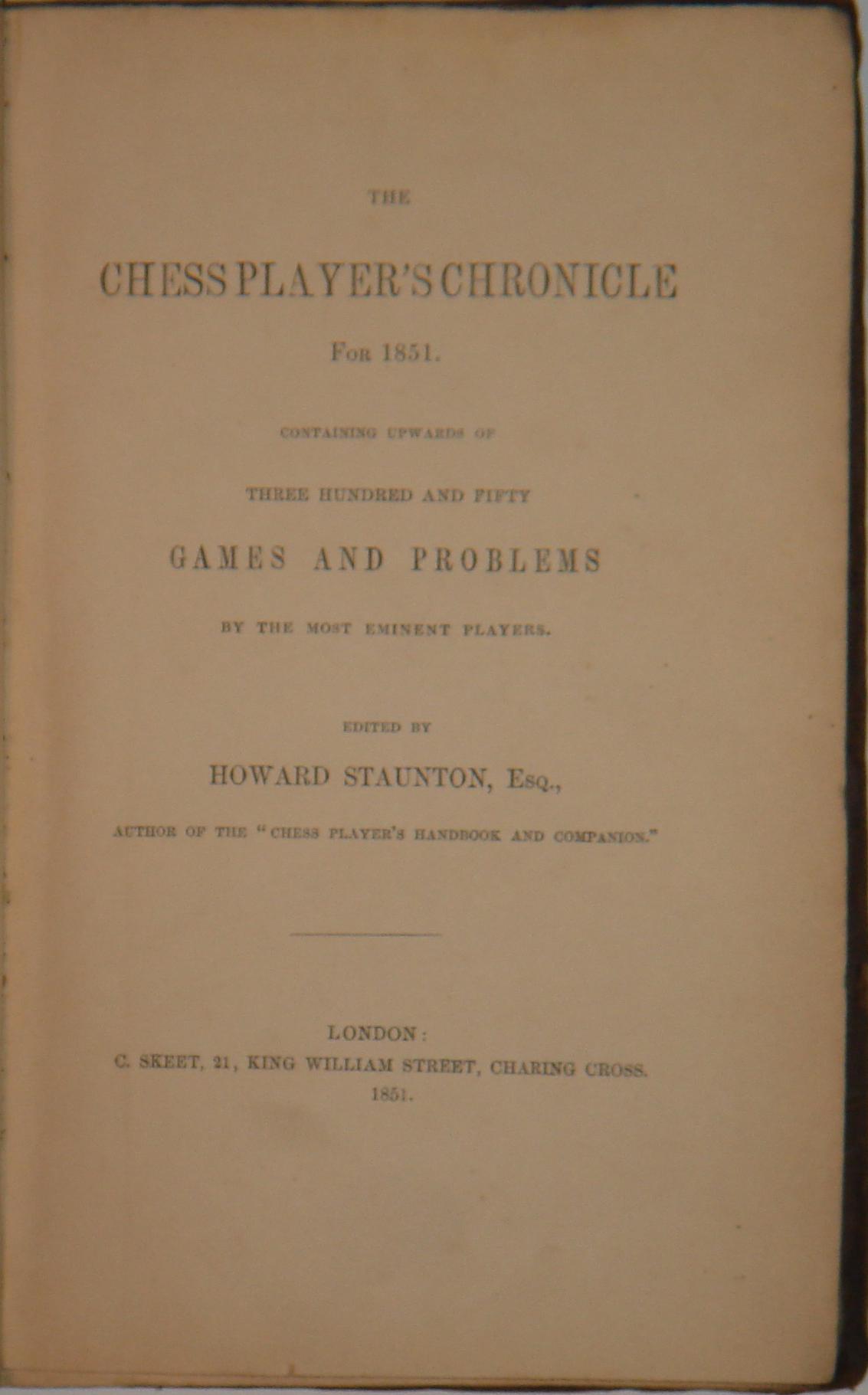 design only two years prior. The Chess Player's Chronicle was a periodical published by