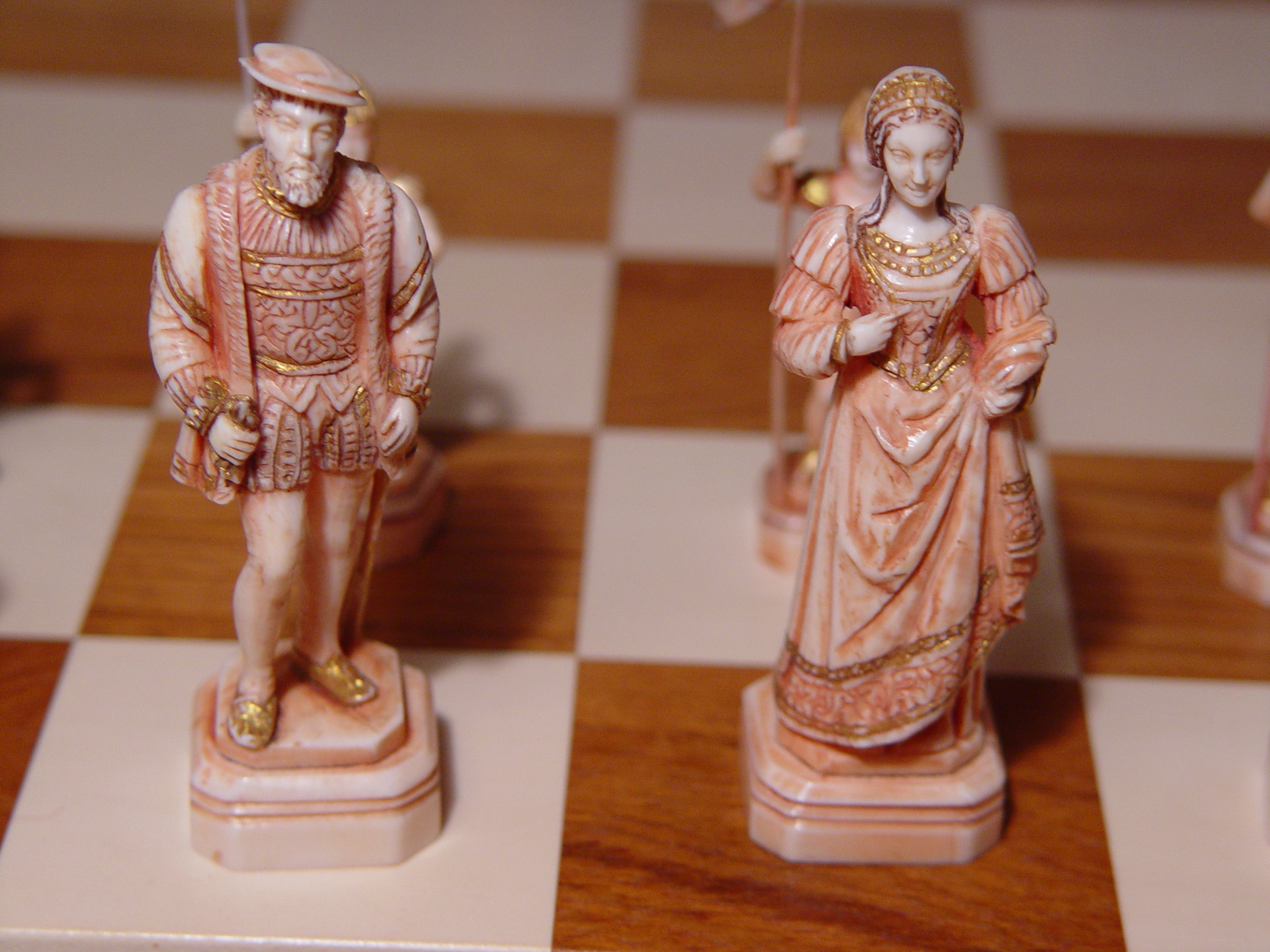 French Ivory Figural Chess Set - Henry VIII vs. Francois I - Black King and Queen