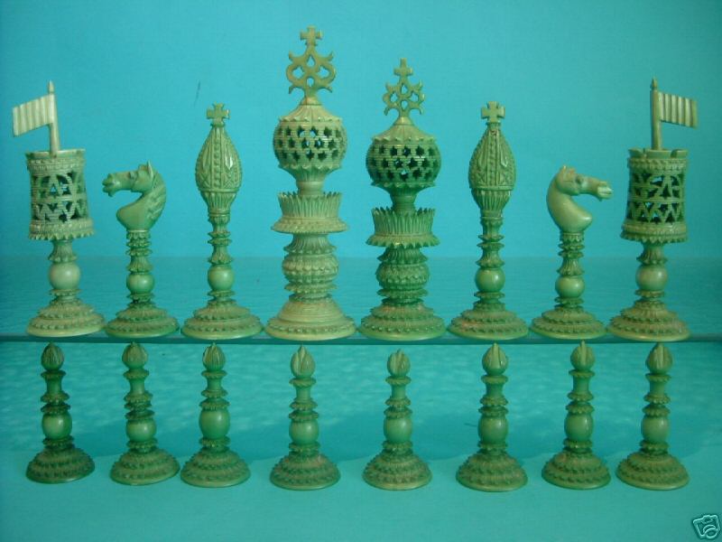 An Anglo-Indian ivory chess set with many unusual features. Probably manufactured in India for the English market.