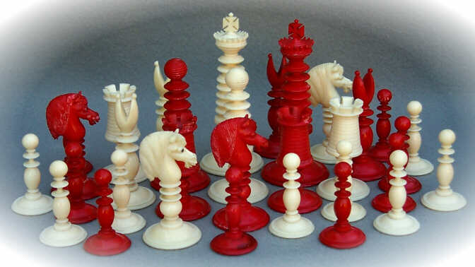 Thomas Lund and his son William Lund were two of the top chess set manufacturers of the 19th-century. This set is from Thomas' workshop, and it is labeled on the bottom of the White King. 1H 19th century. Click here for my Picasa album with photos of this set |