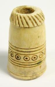 A bone gaming piece, probably a chess piece, with the classic Islamic circle designs. Fifteenth century.