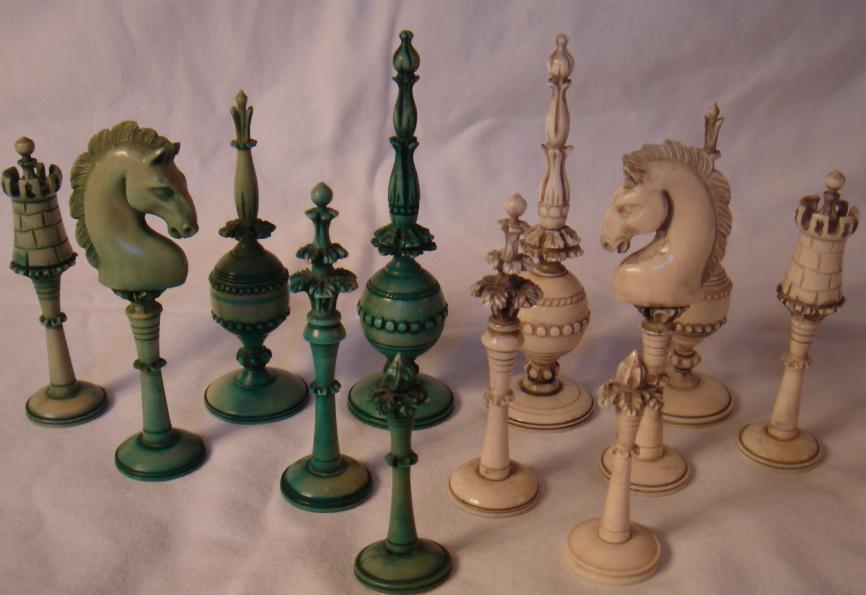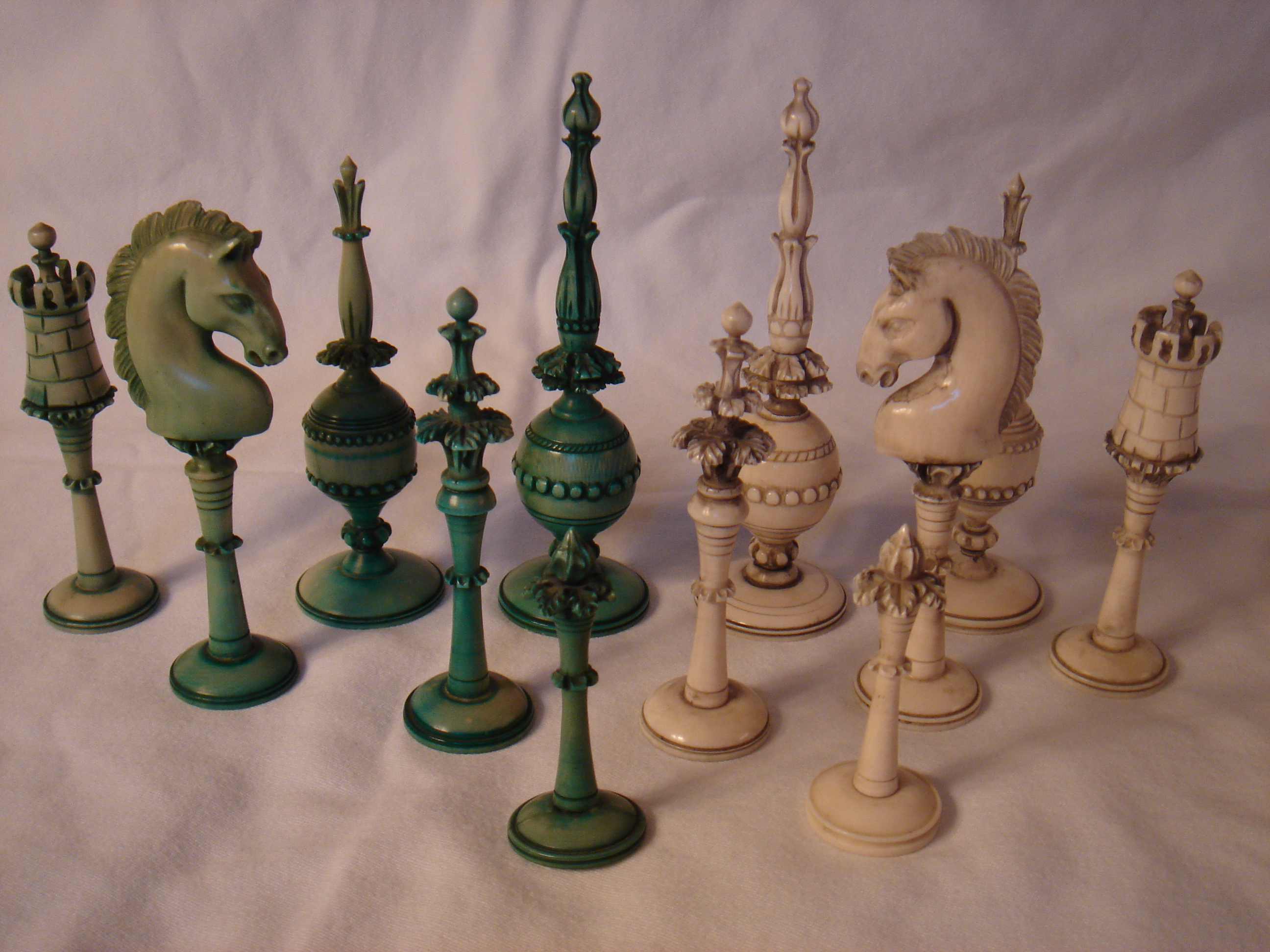 Turkish Style Carved Ivory Chess Set - Assorted Pieces