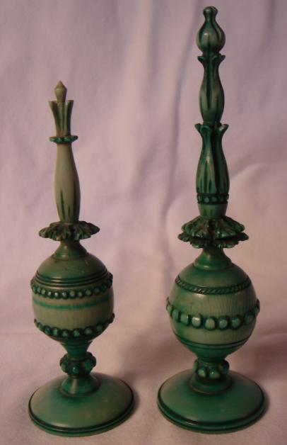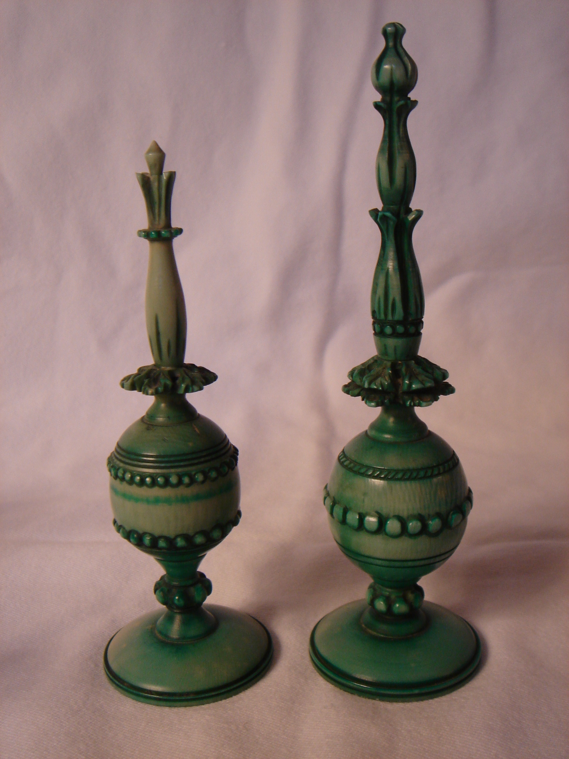 Turkish Style Carved Ivory Chess Set - Green King & Queen