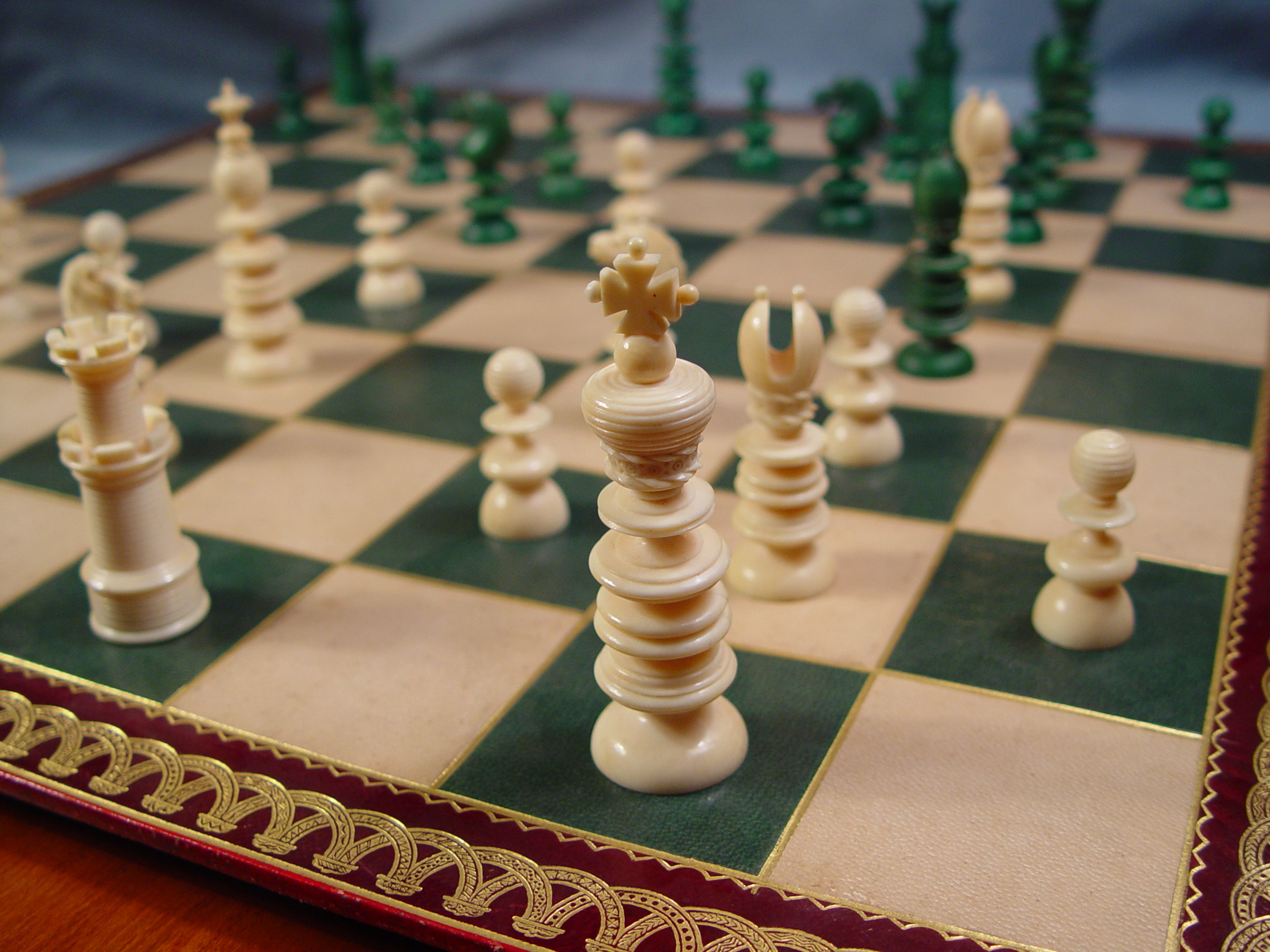 English Ivory Chess Set on Leuchars Board |