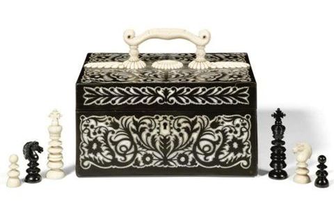 George Merrifield was a manufacturer of high-quality items, including this chess set and fitted casket, in the 2nd quarter of the 19th century.