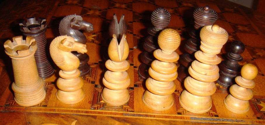 The distinctive knights point to one and only one manufacturer: George Merrifield of Great Turnstile, London. Circa 1830-1840. This set was a gift from a fellow collector in the Netherlands, to whom I am very grateful! |